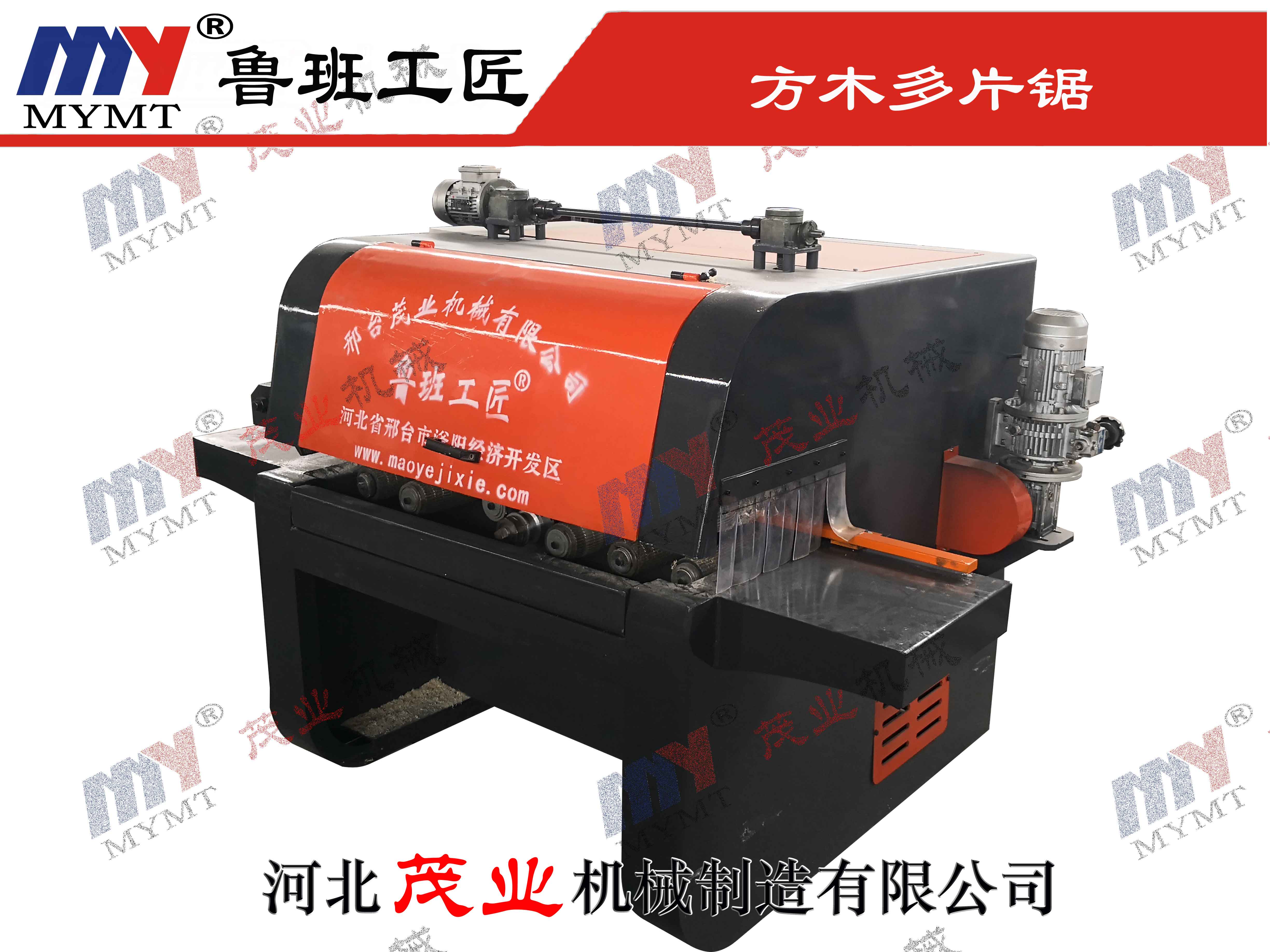 該款方木多片鋸是河北茂業機械制造有限公司針對長度小于200cm方木生產加工設計的一款機型,適合加工寬度5-30cm,高度6-15cm的方木。主軸鋸片有效寬度最大30cm,該款多片鋸具有生產效率高,操作維護簡單,出材光潔度高無須壓刨等特點。