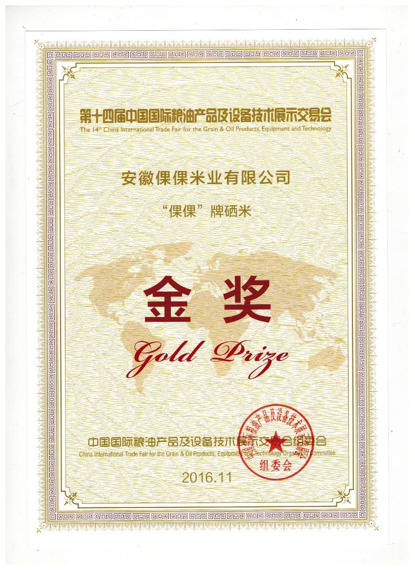 發證機構:   中國國際糧油產品及設備技術展示交易會組委會 發證時間 :   2016-11-01