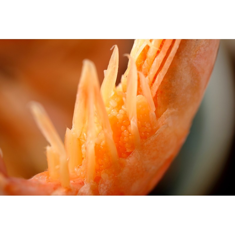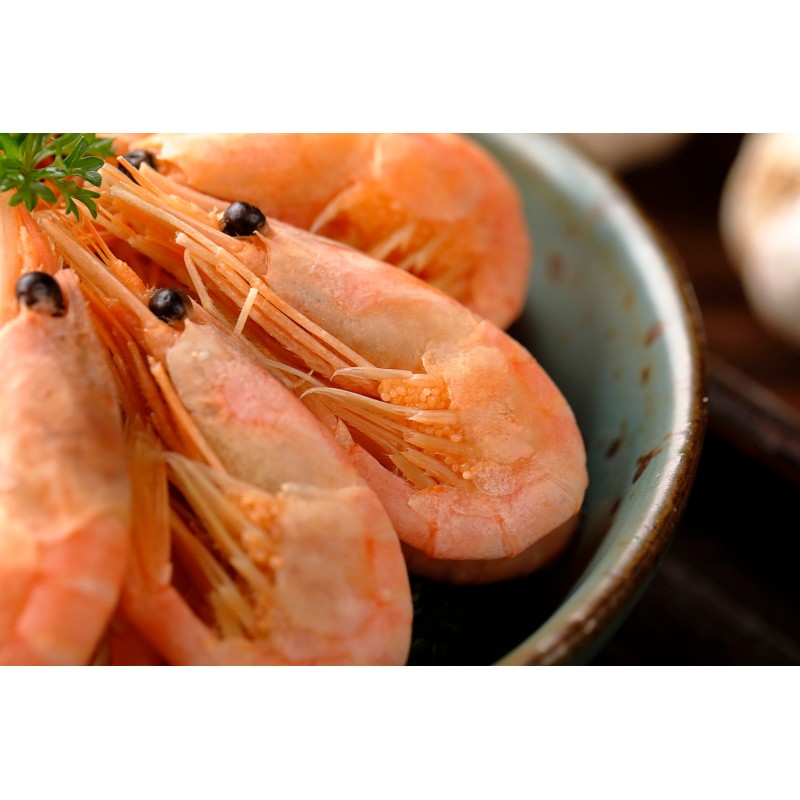 深海捕撈,熟凍甜蝦,帶籽刺身。