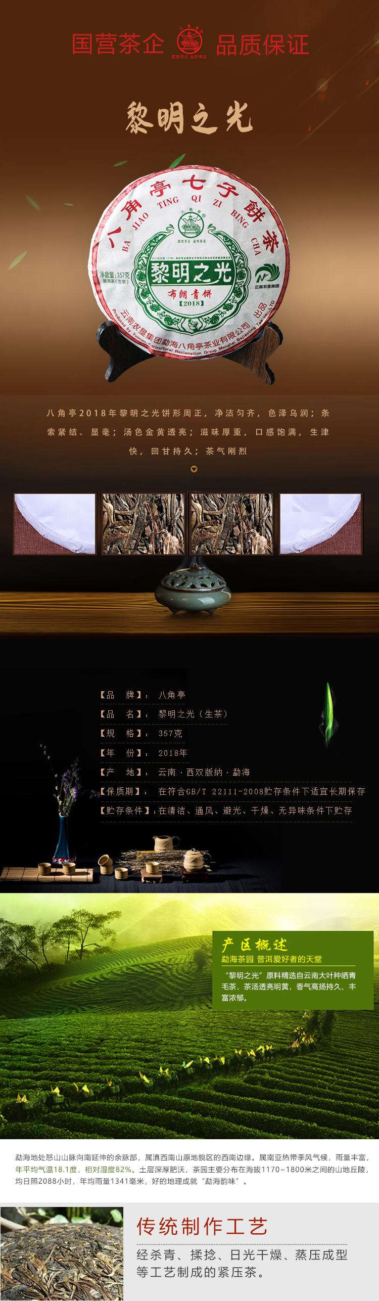 云南農墾集團勐海八角亭茶業有限公司(簡稱八角亭茶業,原黎明茶廠),坐落于普洱茶核心產區云南省西雙版納傣族自治州勐海縣勐遮鎮,隸屬于云南省農墾集團有限公司。