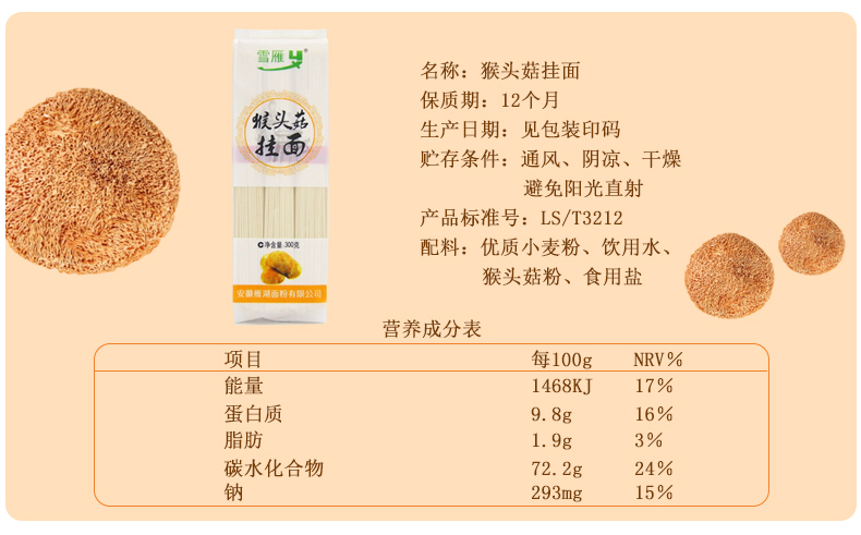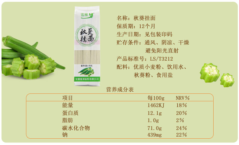 皖墾特色掛面黑小麥秋葵猴頭菇300克每袋多種口味