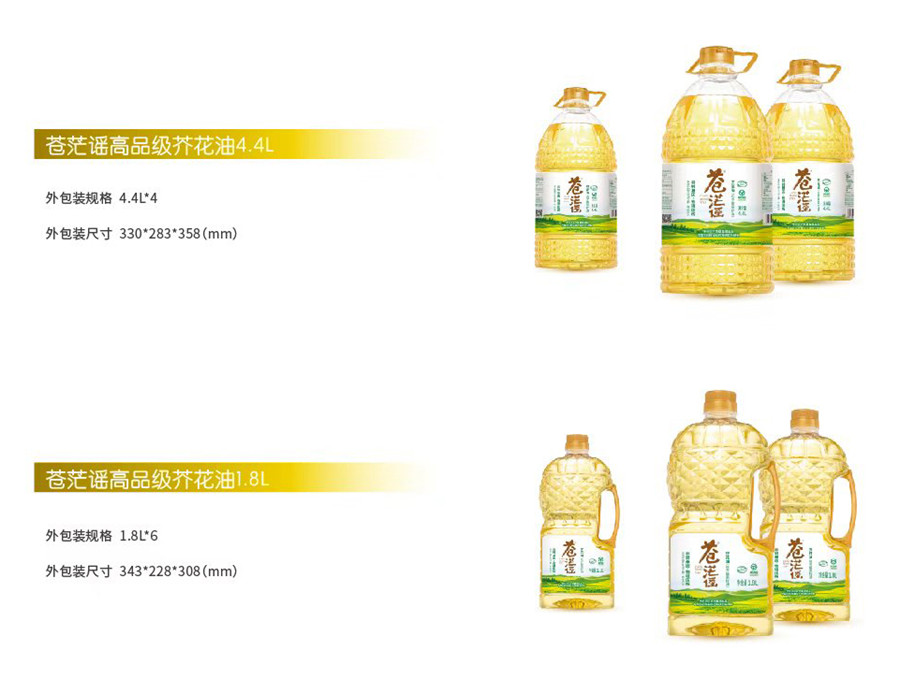 蒼茫謠壓榨一級芥花油系列產(chǎn)品具有高油煙點(diǎn)、營養(yǎng)豐富、口感好的特點(diǎn),是可以直接適量飲用或拌涼菜、沙拉的健康廚房食用油新選擇。